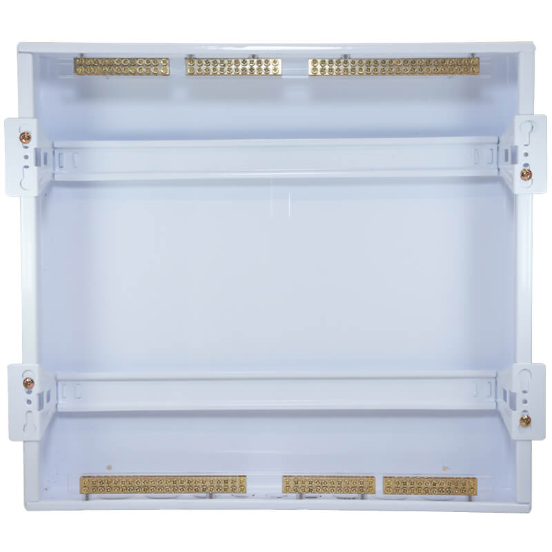 The VBM3036FL is an IP20-rated 30-36 Way Flash-Mount distribution board, with a compact 2-row height, it can accommodate up to 36 individual 18mm modules, providing an efficient and reliable electrical distribution solution for your space. Crafted from high-quality, powder-coated iron, the durable metal tray ensures strength and longevity. Conforming to South Africa compliance standards IEC61439 and IEC61000, the VBM3036FL distribution board is equipped with an Earth & Neutral Bar, offering enhanced safety and reliability in electrical installations. The adjustable DIN rail and front cover simplify the installation process, ensuring a level and secure setup. Additionally, included distribution board labels make circuit identification easy, helping to maintain a tidy and organised electrical system. This VBM3036FL distribution board is the ideal choice for those seeking a robust, efficient, and organised electrical solution.