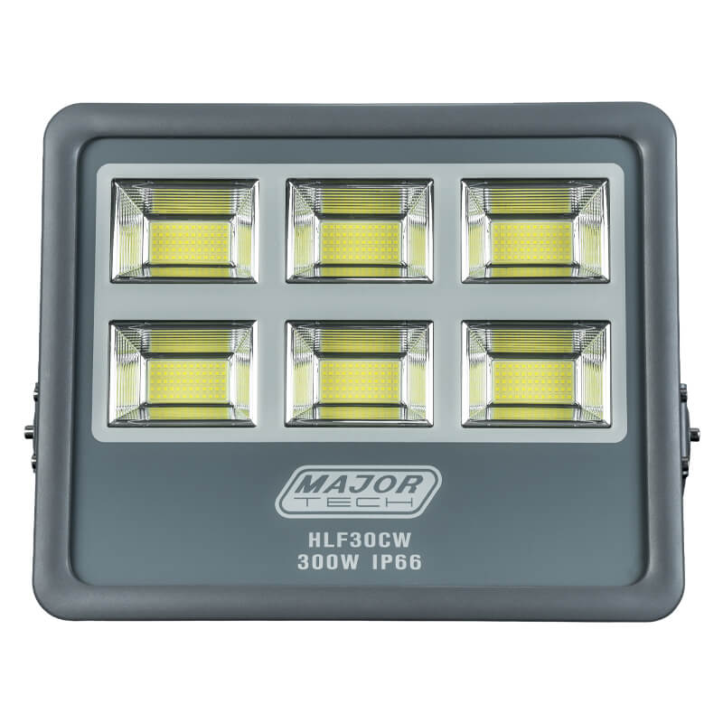 The HLF30CW floodlight is engineered for a wide range of applications, including warehousing, agricultural holdings, parking lots, and sports grounds. It features multiple 50W LED modules housed in a single unit, with each module powered by an IP67 fully isolated driver to enhance both the lifespan and light distribution of the fitting. This EMC-approved floodlight delivers 300W of power and 36,000 lumens of brightness, and is rated IP66 for exceptional durability. In addition, the floodlight is equipped with 6kV surge protection to safeguard against power surges. Its IK08 impact resistance ensures it can withstand tough environments, while the heavy-duty aluminum frame is corrosion-resistant, providing long-lasting performance even in challenging conditions. The floodlight also comes with robust, high-quality fixing brackets, making installation and positioning simple and efficient. Additionally, it includes a 50cm cable, providing extra flexibility when connecting to the main power supply.