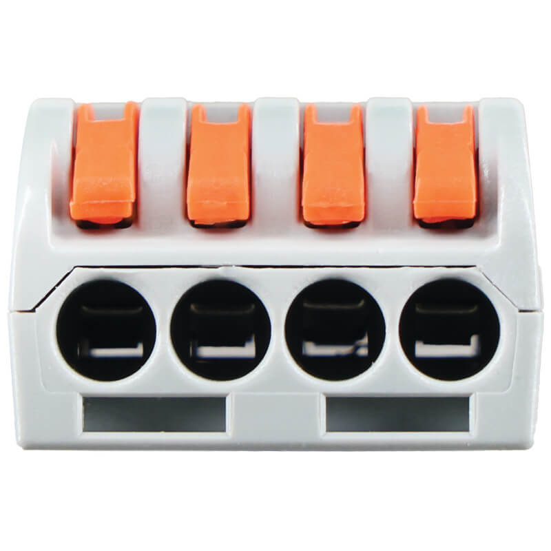 The PCT-224 Interjoining Connector Block offers a quick and secure clamping solution, with the added benefit of an easy release when needed. Designed with a screwless connection, it helps reduce installation time for electricians and contractors. This 4 Pole connector is ICE Standard Approved, rated at 450V, supports up to 32A, and provides 4kV voltage resistance.