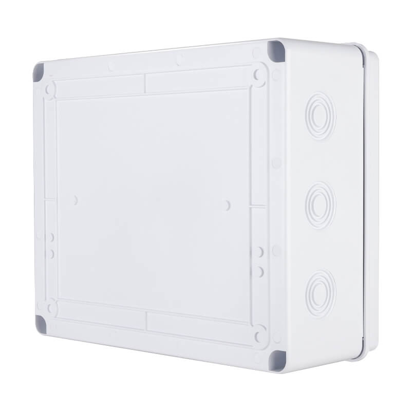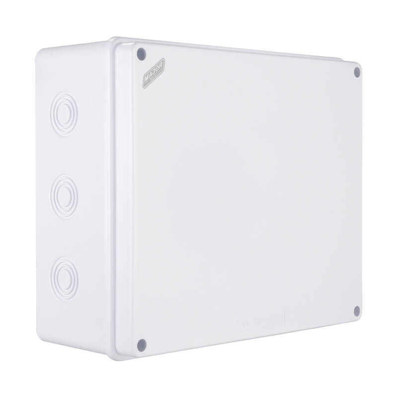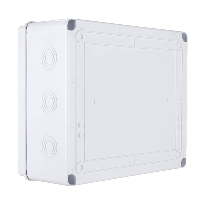 The VJ302512G is a high-quality rectangle electrical junction box, measuring 300mm x 250mm x 120mm, with an IP65 ingress protection rating, making it suitable for indoor and light outdoor applications. Designed with multiple pre-formed knockouts in various sizes, it offers flexible cable entry options for easier installation. Constructed from non-flammable, high-grade ABS plastic, the VJ302512G is both durable and lightweight. It features an IK08 impact resistance rating, ensuring protection against mechanical impacts in demanding environments. The product complies with international standards IEC 60529 and IEC 60670, and holds multiple certifications including CE, RoHS, HF test, IK test, and is manufactured under the ISO 9001 quality management system.