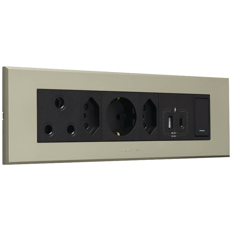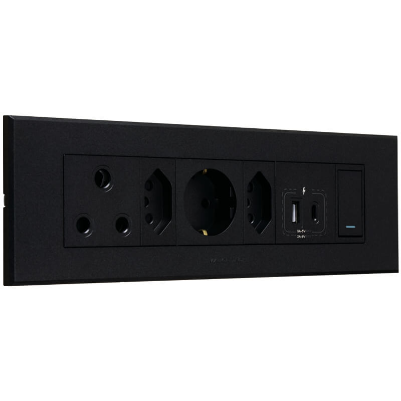 All of Veti combination sockets have been tested and approved to the required standards. The letter of authorities can be downloaded from the website for the individual components for checking. The omni cluster combinations are available in 5 different colour options in order to give the customer a wide variety of colours to suit any installation. Each combination has been carefully selected based on customer preferences but due to the wide array of modules there are many options which are not covered and can be designed by the user according to their specific preferences. All switches and sockets are IEC / SANS approved.