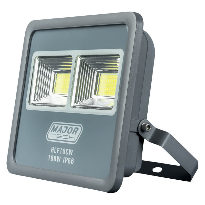 The HLF10CW floodlight is engineered for a wide range of applications, including warehousing, agricultural holdings, parking lots, and sports grounds. It features multiple 50W LED modules housed in a single unit, with each module powered by an IP67 fully isolated driver to enhance both the lifespan and light distribution of the fitting. This EMC-approved floodlight delivers 100W of power and 12,000 lumens of brightness, and is rated IP66 for exceptional durability. In addition, the floodlight is equipped with 6kV surge protection to safeguard against power surges. Its IK08 impact resistance ensures it can withstand tough environments, while the heavy-duty aluminum frame is corrosion-resistant, providing long-lasting performance even in challenging conditions. The floodlight also comes with robust, high-quality fixing brackets, making installation and positioning simple and efficient. Additionally, it includes a 50cm cable, providing extra flexibility when connecting to the main power supply.