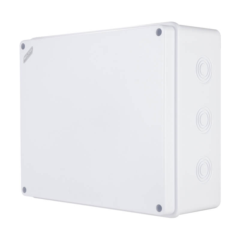 The VJ302512G is a high-quality rectangle electrical junction box, measuring 300mm x 250mm x 120mm, with an IP65 ingress protection rating, making it suitable for indoor and light outdoor applications. Designed with multiple pre-formed knockouts in various sizes, it offers flexible cable entry options for easier installation. Constructed from non-flammable, high-grade ABS plastic, the VJ302512G is both durable and lightweight. It features an IK08 impact resistance rating, ensuring protection against mechanical impacts in demanding environments. The product complies with international standards IEC 60529 and IEC 60670, and holds multiple certifications including CE, RoHS, HF test, IK test, and is manufactured under the ISO 9001 quality management system.